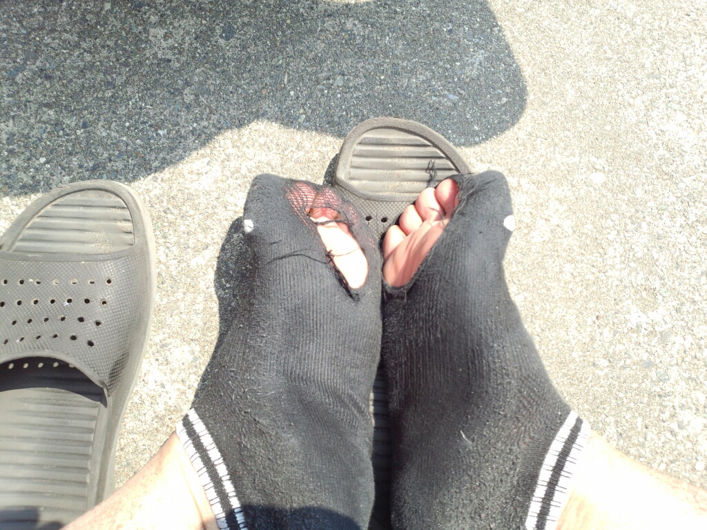 おまけに、熱砂対策のソックスもあまりの高温に耐えきれず、溶けて破れてしまいました。