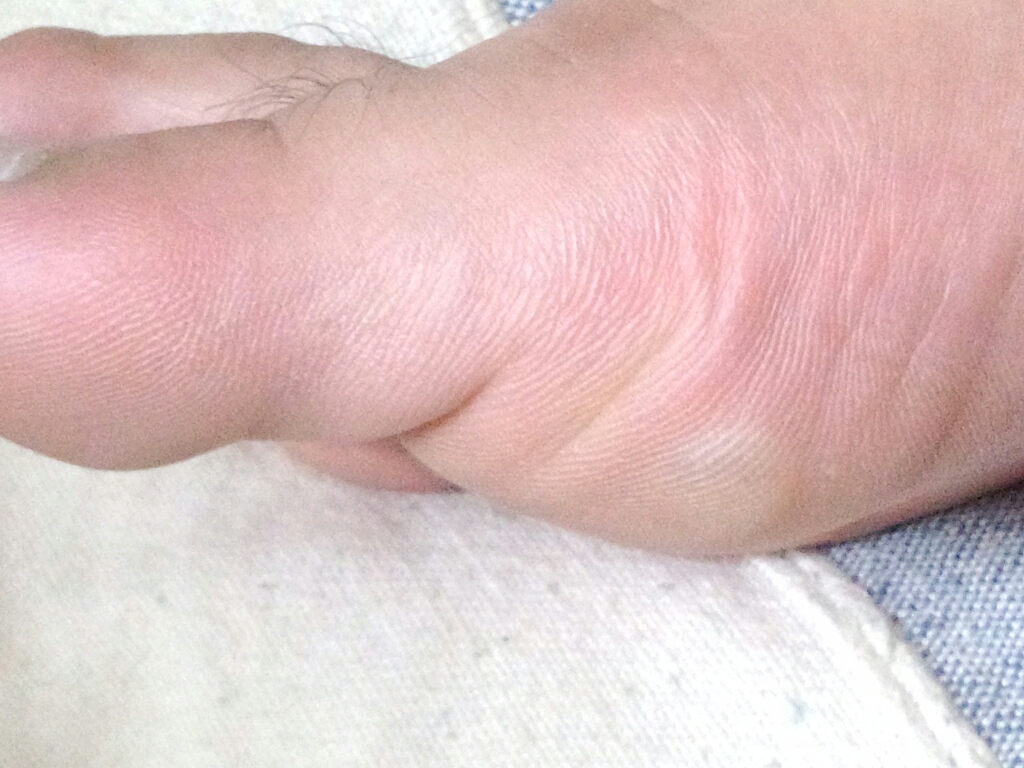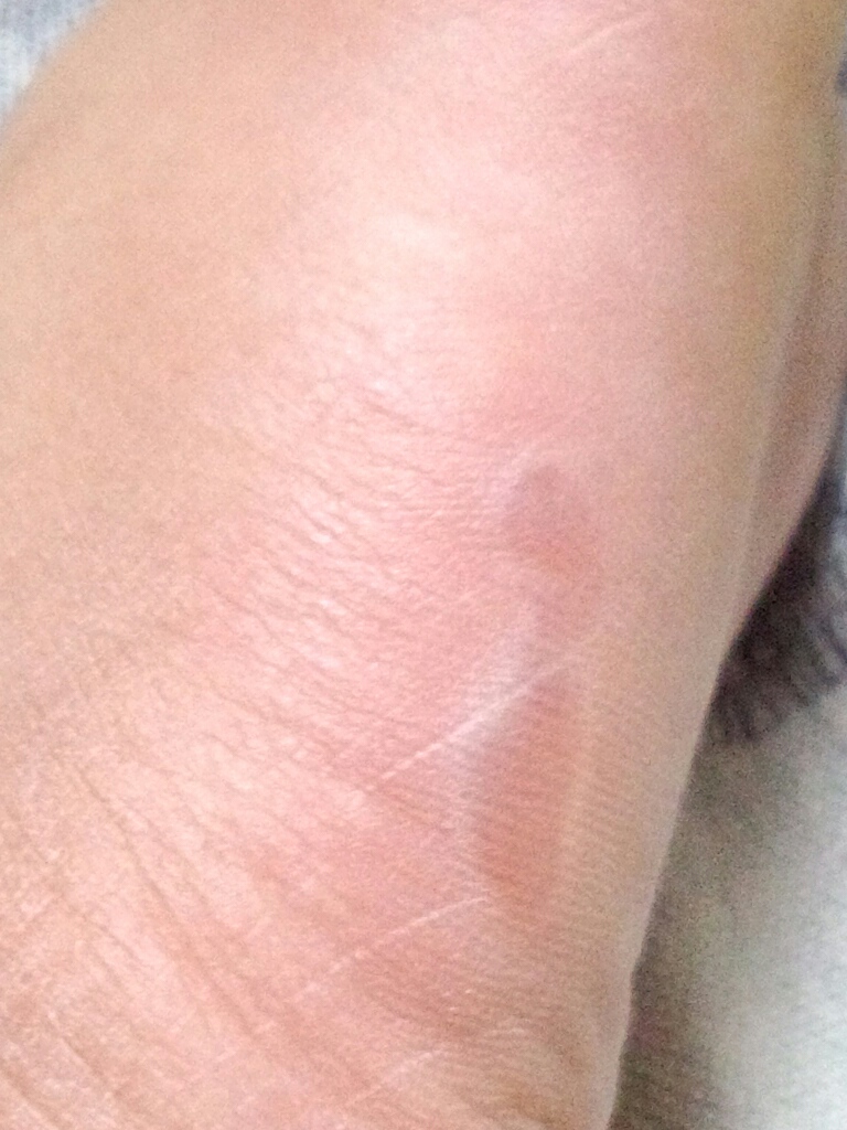 先日のビーチバレーで負った足の裏の火傷、当日はヒリヒリだけだったけど、水膨れになってきて、痛いのナンノ。